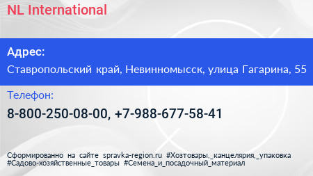 NL International по адресу Ставропольский край, Невинномысск, улица Гагарина, 55 в дальнейшем Организация, размещена в следующих категориях: