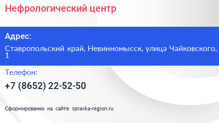 Нефрологический центр по адресу Ставропольский край, Невинномысск, улица Чайковского, 1 в дальнейшем Организация, размещена в следующих категориях: