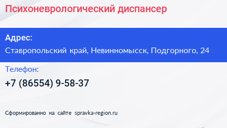 Психоневрологический диспансер по адресу Ставропольский край, Невинномысск, Подгорного, 24 в дальнейшем Организация, размещена в следующих категориях: