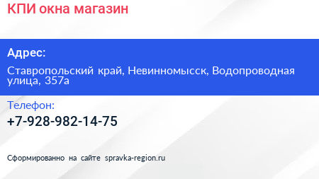 КПИ окна, магазин по адресу Ставропольский край, Невинномысск, Водопроводная улица, 357а в дальнейшем Организация, размещена в следующих категориях: