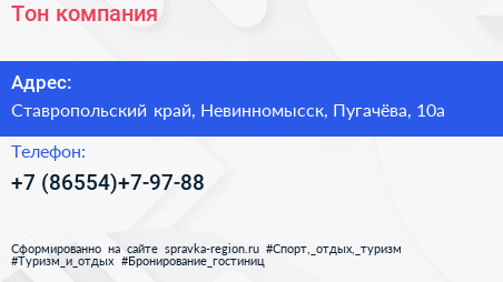 Тон, компания по адресу Ставропольский край, Невинномысск, Пугачёва, 10а в дальнейшем Организация, размещена в следующих категориях: