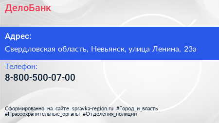 ДелоБанк по адресу Свердловская область, Невьянск, улица Ленина, 23а в дальнейшем Организация, размещена в следующих категориях: