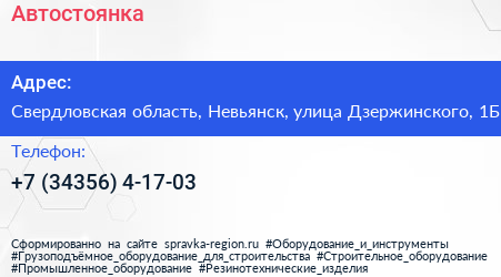 Адрес: Свердловская область, Невьянск, Р-352 89 Километр, 1