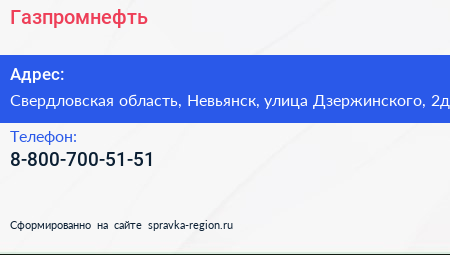 Газпромнефть по адресу Свердловская область, Невьянск, улица Дзержинского, 2д в дальнейшем Организация, размещена в следующих категориях: