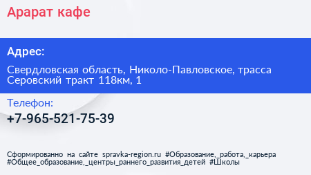 Арарат, кафе по адресу Свердловская область, Николо-Павловское, трасса Серовский тракт 118км, 1 в дальнейшем Организация, размещена в следующих категориях: