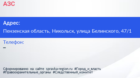 АЗС по адресу Пензенская область, Никольск, улица Белинского, 47/1 в дальнейшем Организация, размещена в следующих категориях: