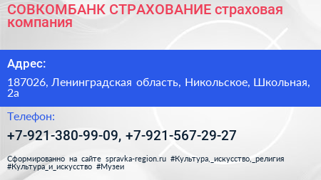СОВКОМБАНК СТРАХОВАНИЕ, страховая компания по адресу 187026, Ленинградская область, Никольское, Школьная, 2а в дальнейшем Организация, размещена в следующих категориях: