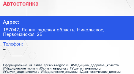 Автостоянка по адресу 187047, Ленинградская область, Никольское, Первомайская, 2Б в дальнейшем Организация, размещена в следующих категориях: