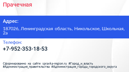 Прачечная по адресу 187026, Ленинградская область, Никольское, Школьная, 2а в дальнейшем Организация, размещена в следующих категориях: