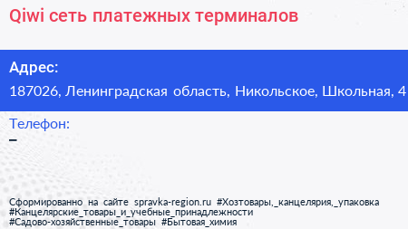 Qiwi, сеть платежных терминалов по адресу 187026, Ленинградская область, Никольское, Школьная, 4 в дальнейшем Организация, размещена в следующих категориях: