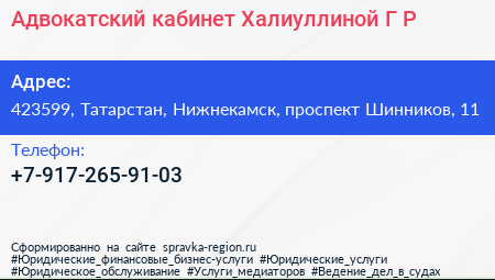 Адвокатский кабинет Халиуллиной Г.Р. в Нижнекамске
