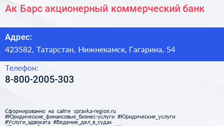 Ак Барс, акционерный коммерческий банк по адресу 423582, Татарстан, Нижнекамск, Гагарина, 54 в дальнейшем Организация, размещена в следующих категориях: