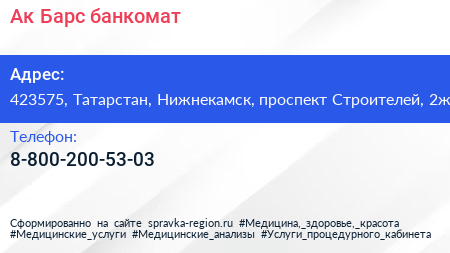 Ак Барс, банкомат по адресу 423575, Татарстан, Нижнекамск, проспект Строителей, 2ж в дальнейшем Организация, размещена в следующих категориях: