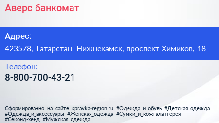 Аверс, банкомат по адресу 423578, Татарстан, Нижнекамск, проспект Химиков, 18 в дальнейшем Организация, размещена в следующих категориях: