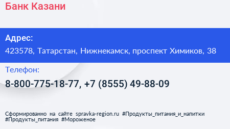 Банк Казани по адресу 423578, Татарстан, Нижнекамск, проспект Химиков, 38 в дальнейшем Организация, размещена в следующих категориях: