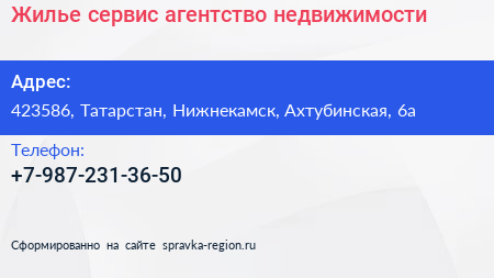 Жилье-сервис, агентство недвижимости по адресу 423586, Татарстан, Нижнекамск, Ахтубинская, 6а в дальнейшем Организация, размещена в следующих категориях: