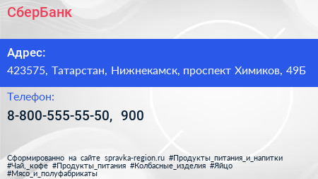 СберБанк по адресу 423575, Татарстан, Нижнекамск, проспект Химиков, 49Б в дальнейшем Организация, размещена в следующих категориях: