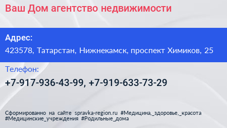 Ваш Дом, агентство недвижимости по адресу 423578, Татарстан, Нижнекамск, проспект Химиков, 25 в дальнейшем Организация, размещена в следующих категориях: