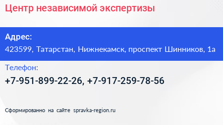 Центр независимой экспертизы по адресу 423599, Татарстан, Нижнекамск, проспект Шинников, 1а в дальнейшем Организация, размещена в следующих категориях:
