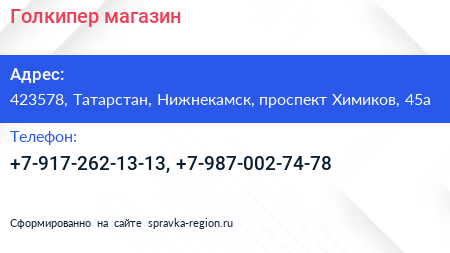 Голкипер, магазин по адресу 423578, Татарстан, Нижнекамск, проспект Химиков, 45а в дальнейшем Организация, размещена в следующих категориях: