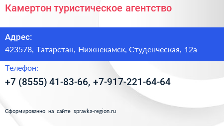 Камертон, туристическое агентство по адресу 423578, Татарстан, Нижнекамск, Студенческая, 12а в дальнейшем Организация, размещена в следующих категориях: