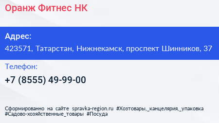 Оранж Фитнес НК по адресу 423571, Татарстан, Нижнекамск, проспект Шинников, 37 в дальнейшем Организация, размещена в следующих категориях: