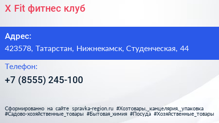 X-Fit, фитнес-клуб по адресу 423578, Татарстан, Нижнекамск, Студенческая, 44 в дальнейшем Организация, размещена в следующих категориях:
