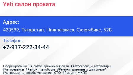 Yeti, салон проката по адресу 423599, Татарстан, Нижнекамск, Сююмбике, 52Б в дальнейшем Организация, размещена в следующих категориях: