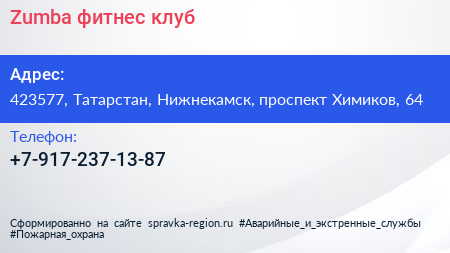 Zumba, фитнес-клуб по адресу 423577, Татарстан, Нижнекамск, проспект Химиков, 64 в дальнейшем Организация, размещена в следующих категориях:
