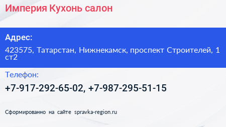 Империя Кухонь, салон по адресу 423575, Татарстан, Нижнекамск, проспект Строителей, 1 ст2 в дальнейшем Организация, размещена в следующих категориях: