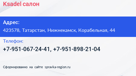 Ksadel, салон по адресу 423578, Татарстан, Нижнекамск, Корабельная, 44 в дальнейшем Организация, размещена в следующих категориях: