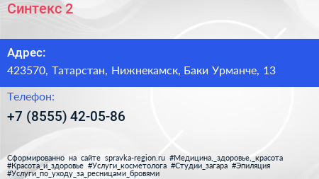 Синтекс-2 по адресу 423570, Татарстан, Нижнекамск, Баки Урманче, 13 в дальнейшем Организация, размещена в следующих категориях: