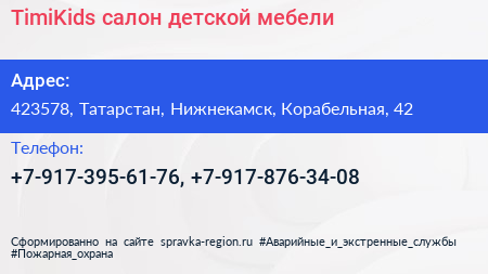 TimiKids, салон детской мебели по адресу 423578, Татарстан, Нижнекамск, Корабельная, 42 в дальнейшем Организация, размещена в следующих категориях: