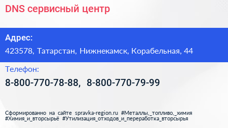 DNS, сервисный центр по адресу 423578, Татарстан, Нижнекамск, Корабельная, 44 в дальнейшем Организация, размещена в следующих категориях: