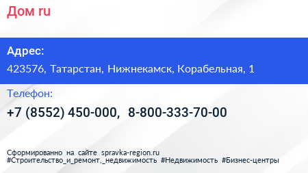Дом.ru по адресу 423576, Татарстан, Нижнекамск, Корабельная, 1 в дальнейшем Организация, размещена в следующих категориях: