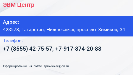 ЭВМ-Центр по адресу 423578, Татарстан, Нижнекамск, проспект Химиков, 34 в дальнейшем Организация, размещена в следующих категориях:
