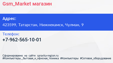 Gsm_Market, магазин по адресу 423599, Татарстан, Нижнекамск, Чулман, 9 в дальнейшем Организация, размещена в следующих категориях: