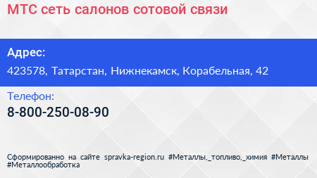 МТС, сеть салонов сотовой связи по адресу 423578, Татарстан, Нижнекамск, Корабельная, 42 в дальнейшем Организация, размещена в следующих категориях: