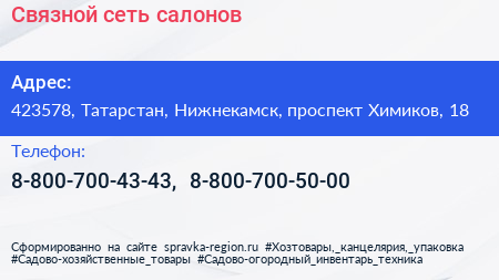 Связной, сеть салонов по адресу 423578, Татарстан, Нижнекамск, проспект Химиков, 18 в дальнейшем Организация, размещена в следующих категориях: