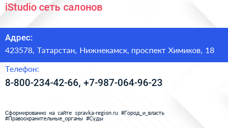 iStudio, сеть салонов по адресу 423578, Татарстан, Нижнекамск, проспект Химиков, 18 в дальнейшем Организация, размещена в следующих категориях: