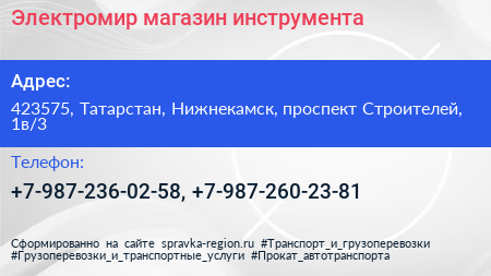 Электромир, магазин инструмента по адресу 423575, Татарстан, Нижнекамск, проспект Строителей, 1в/3 в дальнейшем Организация, размещена в следующих категориях:
