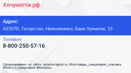 Хочуногти.рф по адресу 423570, Татарстан, Нижнекамск, Баки Урманче, 15 в дальнейшем Организация, размещена в следующих категориях: