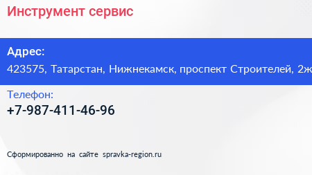 Инструмент-сервис по адресу 423575, Татарстан, Нижнекамск, проспект Строителей, 2ж в дальнейшем Организация, размещена в следующих категориях: