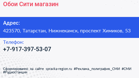 Обои Сити, магазин по адресу 423570, Татарстан, Нижнекамск, проспект Химиков, 53 в дальнейшем Организация, размещена в следующих категориях: