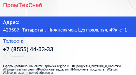 ПромТехСнаб по адресу 423587, Татарстан, Нижнекамск, Центральная, 49к ст1 в дальнейшем Организация, размещена в следующих категориях: