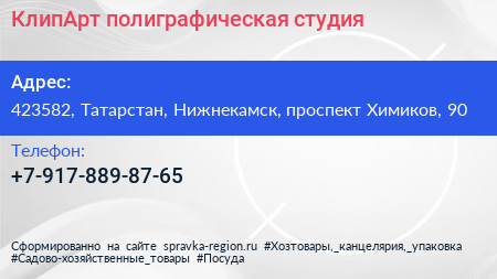 КлипАрт, полиграфическая студия по адресу 423582, Татарстан, Нижнекамск, проспект Химиков, 90 в дальнейшем Организация, размещена в следующих категориях:
