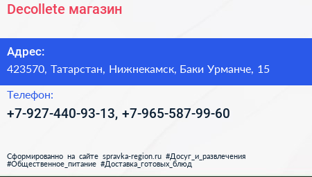 Decollete, магазин по адресу 423570, Татарстан, Нижнекамск, Баки Урманче, 15 в дальнейшем Организация, размещена в следующих категориях: