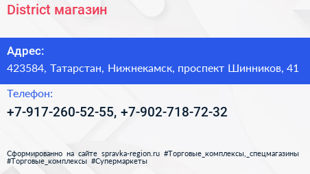 District, магазин по адресу 423584, Татарстан, Нижнекамск, проспект Шинников, 41 в дальнейшем Организация, размещена в следующих категориях: