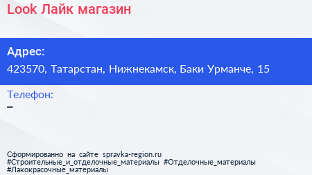 Look Лайк, магазин по адресу 423570, Татарстан, Нижнекамск, Баки Урманче, 15 в дальнейшем Организация, размещена в следующих категориях: