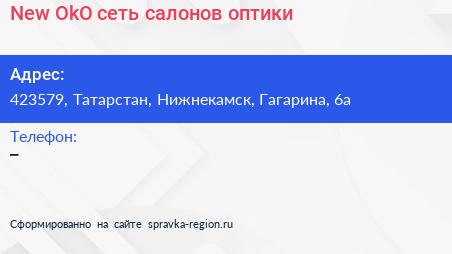 New OkO, сеть салонов оптики по адресу 423579, Татарстан, Нижнекамск, Гагарина, 6а в дальнейшем Организация, размещена в следующих категориях: